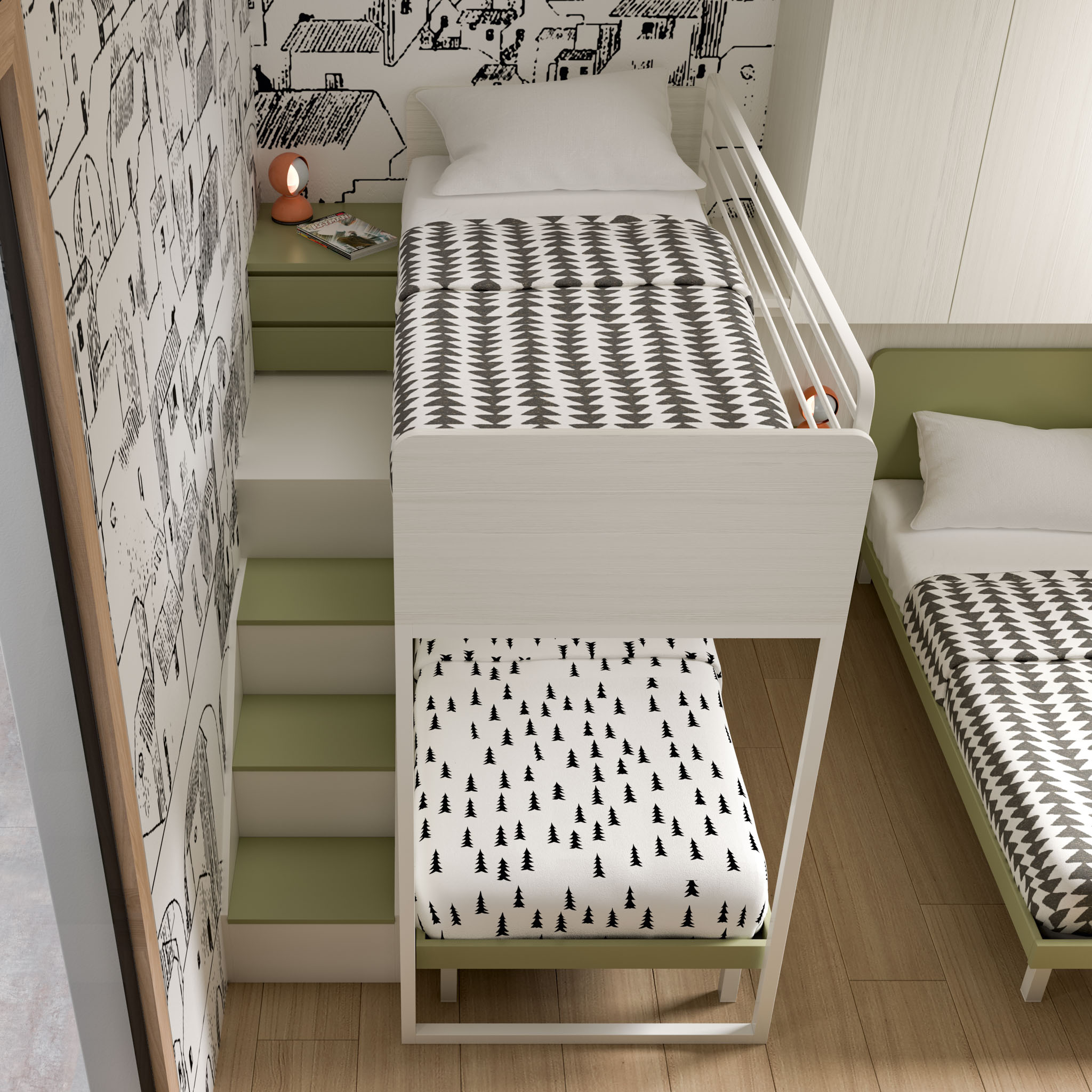 La struttura a castello consente di ottimizzare lo spazio verticale, lasciando libera l’area sottostante per integrare scrittoi, armadiature o zone gioco, secondo i desideri e le abitudini quotidiane dei più piccoli. Ogni progetto è realizzato su misura, con una cura artigianale che consente di personalizzare finiture, colori e configurazioni in base allo stile della casa e all’età dei bambini.