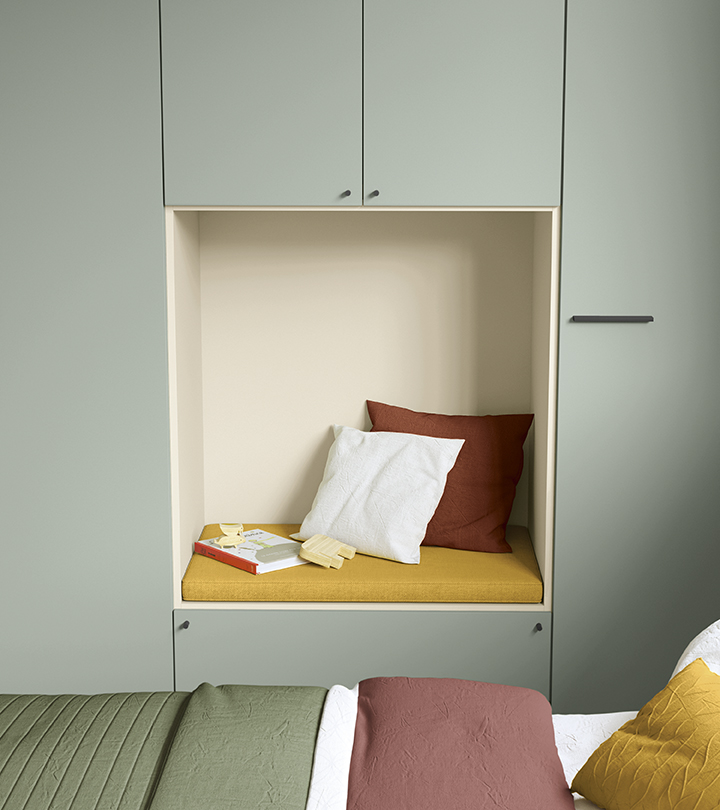 Pensata per accompagnare la crescita, la cameretta Golf Young unisce funzionalità e stile con soluzioni versatili e componibili. Le armadiature possono ospitare pratiche nicchie con sedute, perfette come angoli relax o lettura.
