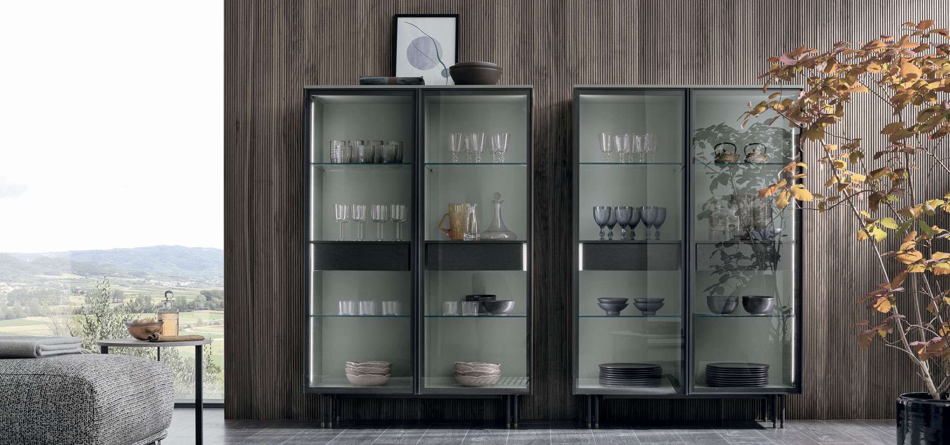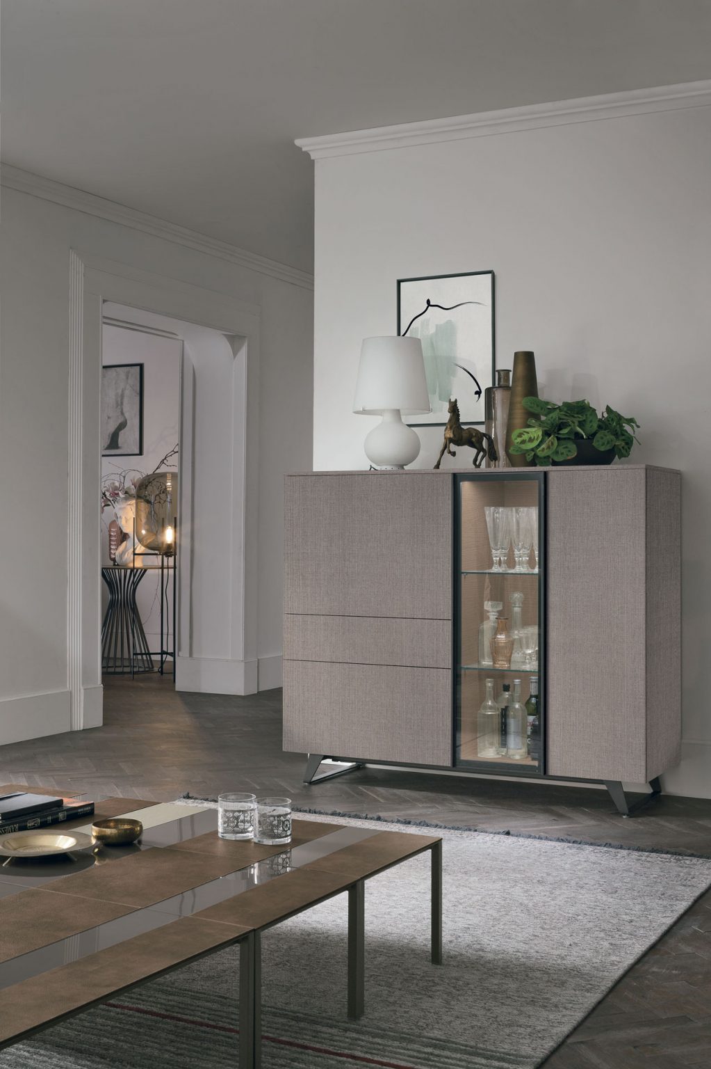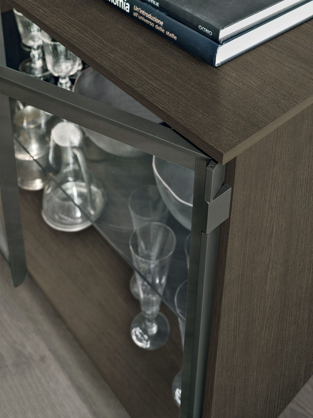 Da sola o abbinata, a sviluppo verticale oppure bassa, in ogni contesto in cui può essere posizionata la madia spicca per personalità e valore aggiunto. L’anta in vetro si accosta perfettamente a tutte le altre finiture.