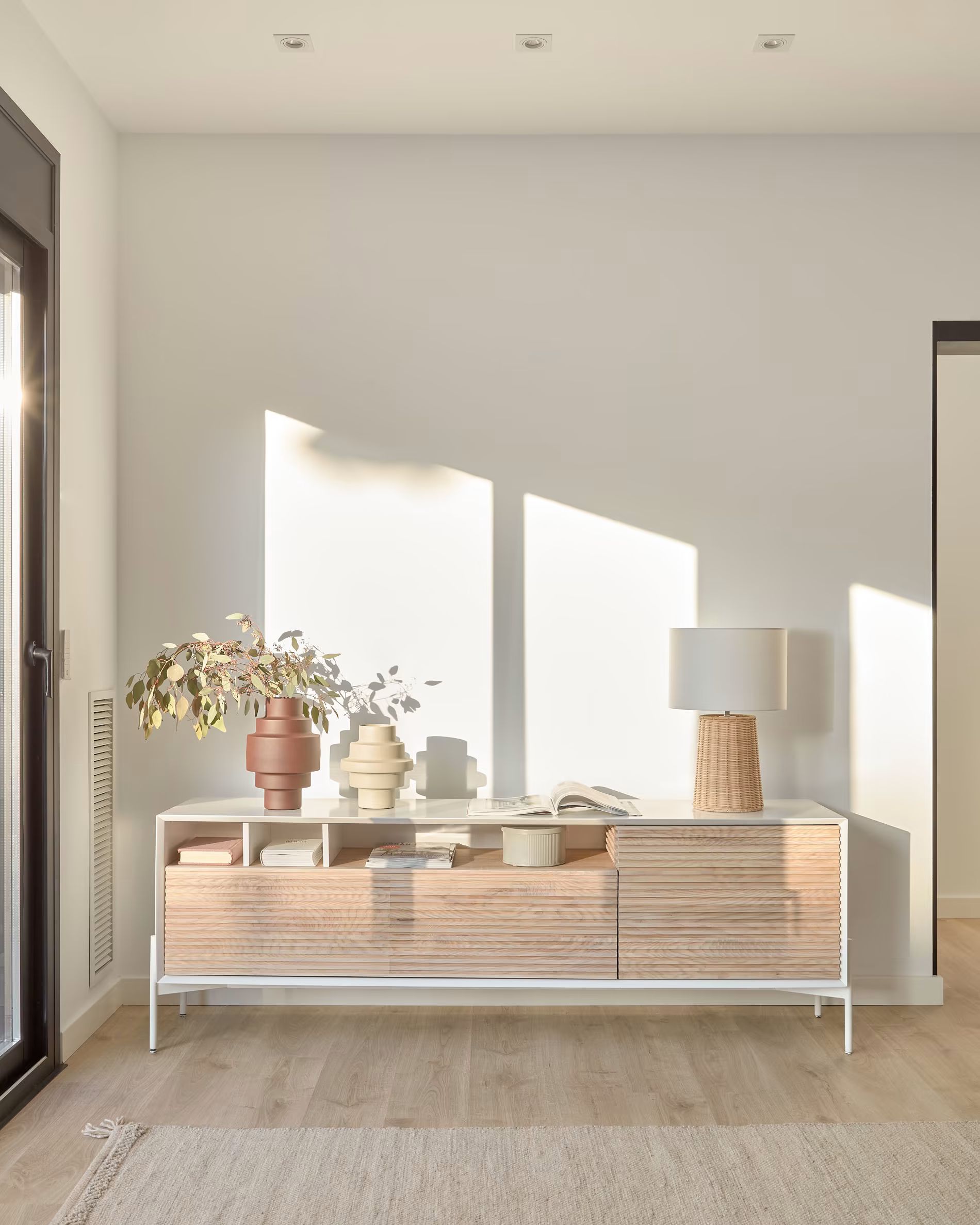 Il mobile TV Marielle è una creazione di Jordi Dedéu, funzionale, estetica e sostenibile. Pensata per giocare con le tonalità del frassino grazie alle sue ombre e venature. Quando parliamo di Marielle parliamo di un design con la D maiuscola.